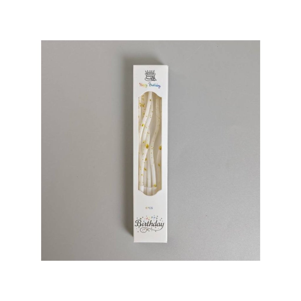 Svíčky spirálové bílé se zlatým zdobením (6 ks) ▹