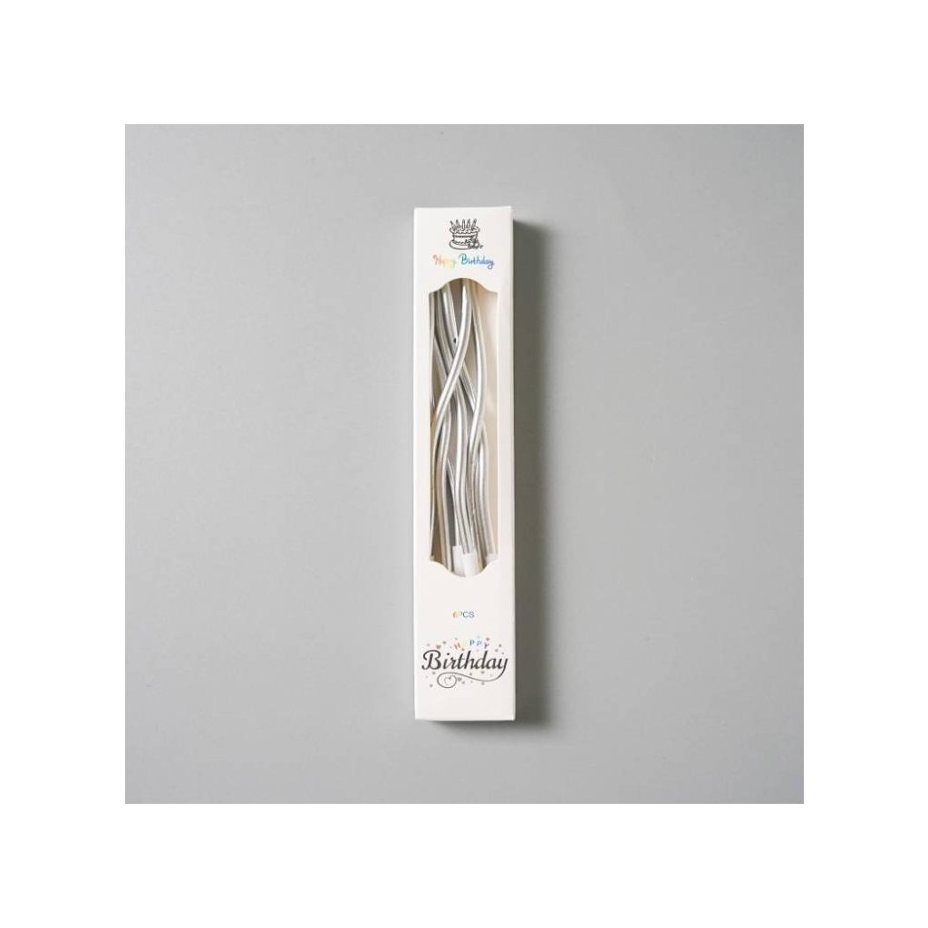 Svíčky spirálové metalické stříbrné (6 ks) ▹