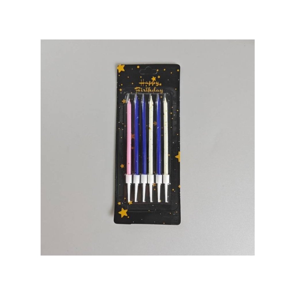Svíčky Star růžové, modré a bílé (6 ks) ▹