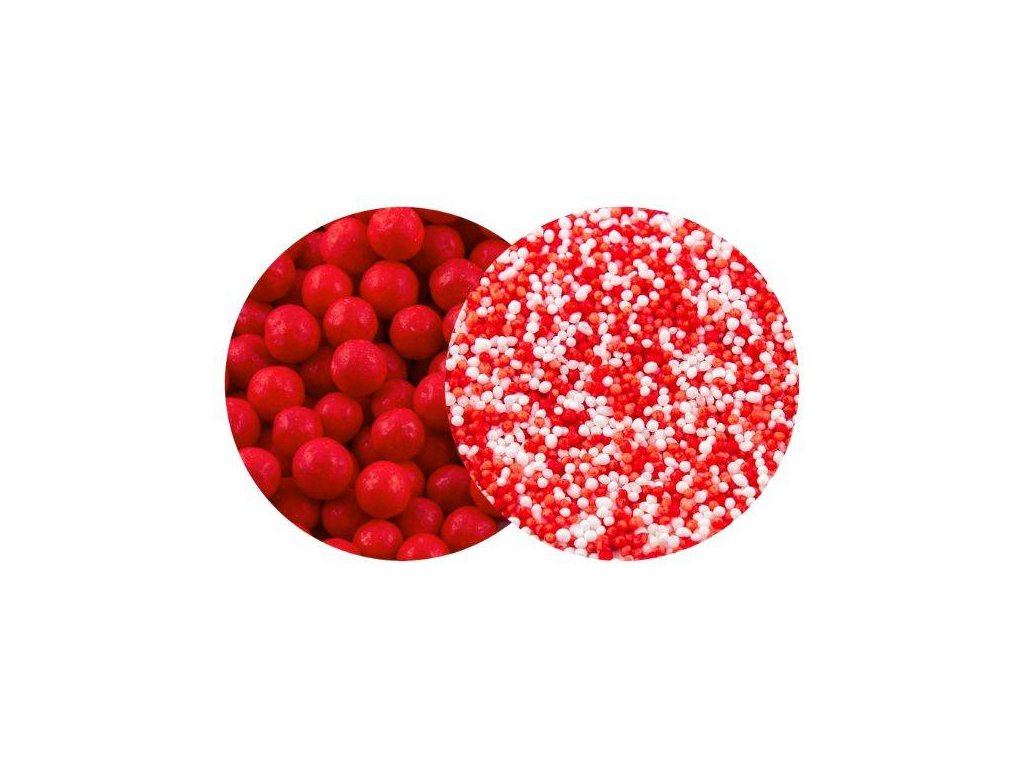 SweetArt cukrové perly červené 7 mm a máček červený a bílý (120 g) ▹