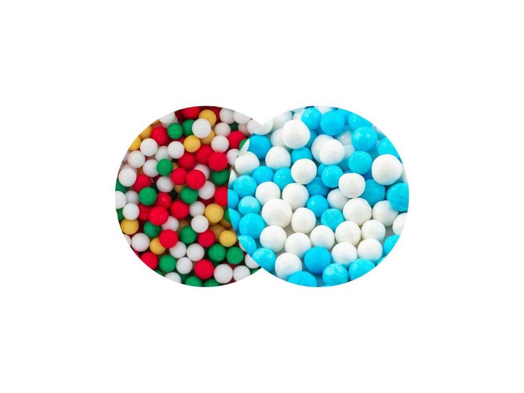 Produkt pro domácí cukráře: SweetArt cukrové perly Golden Christmas mix 5 mm a modré a bílé 7 mm (120 g) ▹,