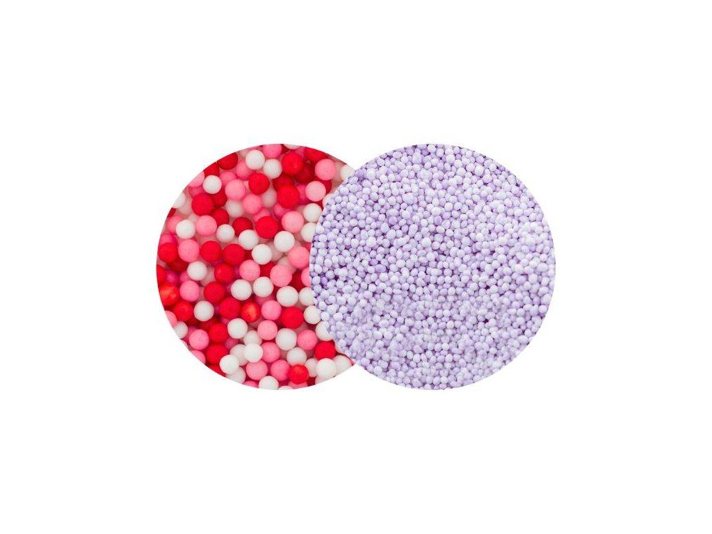 Produkt pro domácí cukráře: SweetArt cukrové perly Love mix 5 mm a máček fialový (120 g) ▹,