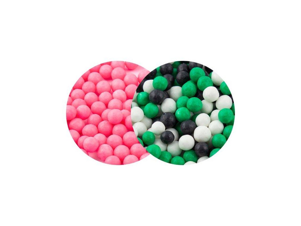 Produkt pro domácí cukráře: SweetArt cukrové perly růžové a Football mix 7 mm (120 g) ▹,