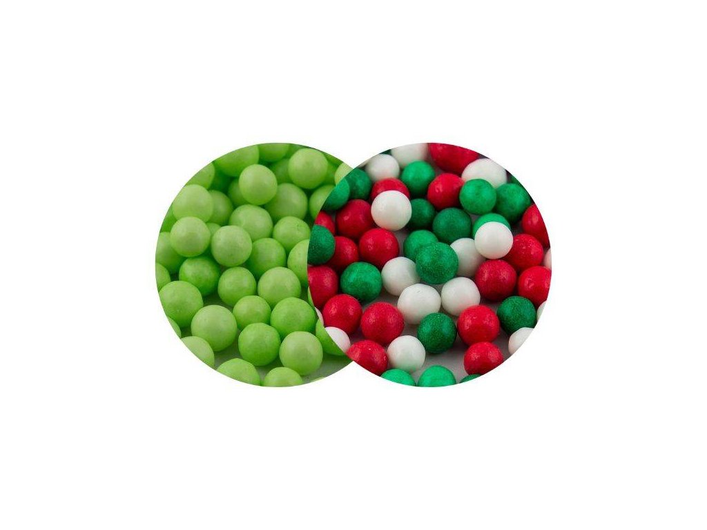 Produkt pro domácí cukráře: SweetArt cukrové perly světle zelené a Christmas mix 7 mm (120 g) ▹,