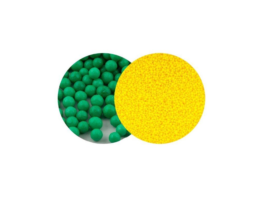 Produkt pro domácí cukráře: SweetArt cukrové perly vánoční zelené 5 mm a máček žlutý (120 g) ▹,