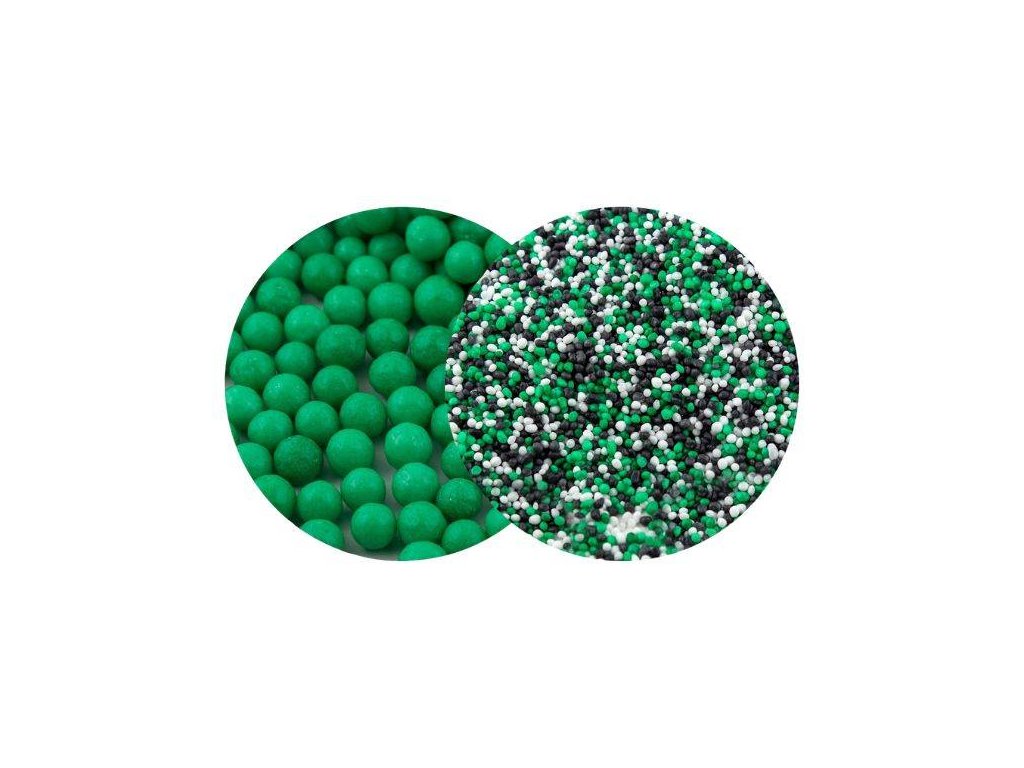 Produkt pro domácí cukráře: SweetArt cukrové perly vánoční zelené 7 mm a máček Football mix (120 g) ▹,