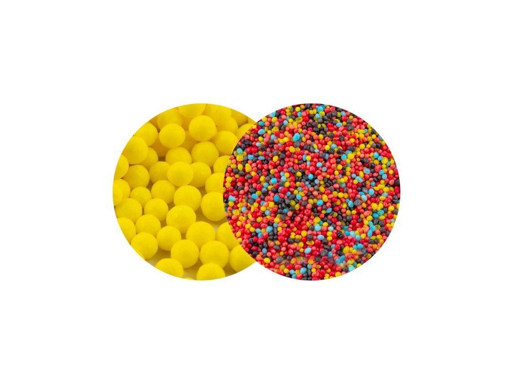 Produkt pro domácí cukráře: SweetArt cukrové perly žluté 7 mm a máček Cars mix (120 g) ▹,