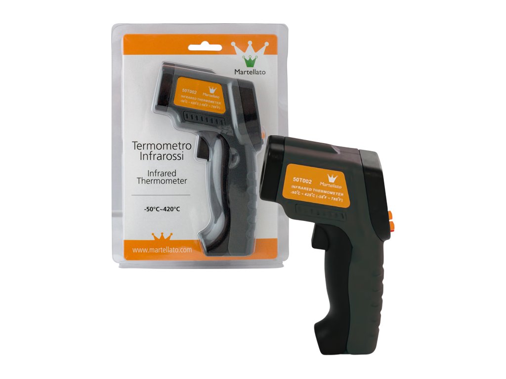 Digitální bezkontaktní teploměr vhodný na práci s potravinami.
