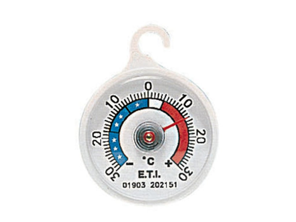 Teploměr do lednice nebo mrazáku. Teplotní rozsah od -30°C do + 30°C, prům. 5,2cm