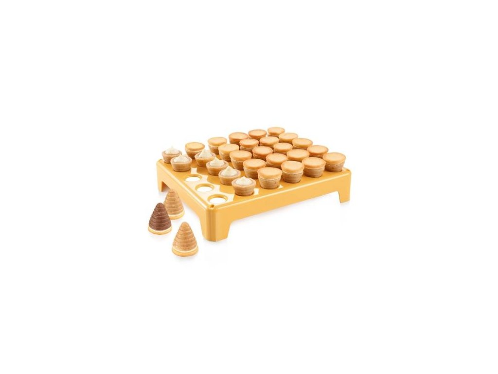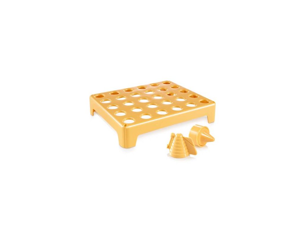 Máte rádi včelí úlky? S tímto stojánkem je připravíte mnohem rychleji a s plným komfortem. V čem Stojánek na včelí úlky DELÍCIA vyniká? Je vynikající pro snadnou a rychlou přípravu 30 včelích úlků, ideální pro použití s Formičkou na včelí úlky DELÍCIA. Vytvarované úlky vložíte špičkou dolů do stojánku, snadno je naplníte krémem a uzavřete lineckým kolečkem nebo kulatým piškotem. Uzavřené včelí úlky pak necháte ve stojánku potřebný čas uležet. Jaké má Stojánek na včelí úlky DELÍCIA další výhody? je stohovatelný, dva nebo více stojánků můžete umístit na sebe. Materiál: Vyrobeno z odolného plastu. Čištění: Vhodné do myčky. Rozměr: 24,5 x 20,5 x 5 cmDoplňkové parametry