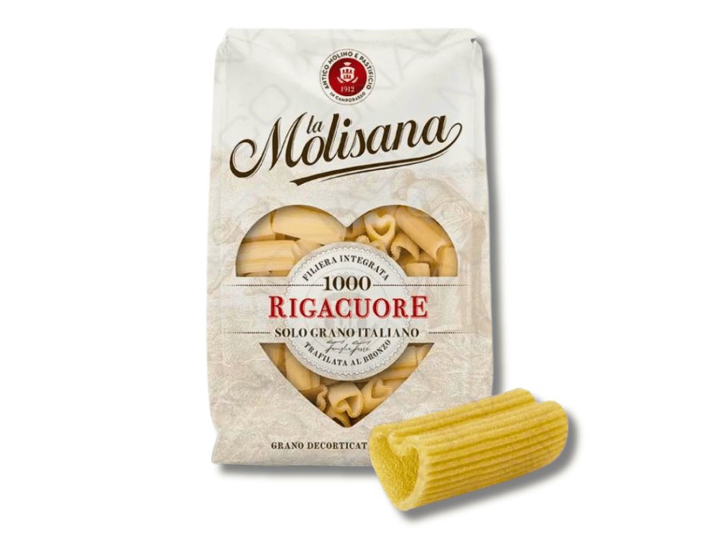 Rigacuore je inovativní formát těstovin od La Molisana, který díky tvaru srdce, 100% italské pšenici a bronzové matrici vyvolává sentiment, romantiku, lehkost a pozitivitu. Je to exkluzivní formát, který vyjadřuje veškerou italskou lásku k těstovinám. Díky svému charakteristickému tvaru srdce tento inovativní, zábavný a módní formát těstovin ještě více umocňuje potěšení z těstovin a spojuje je s emocemi, touhou a citem. S formátem Rigacuore představuje La Molisana nový zážitek z jídla, který díky dvojitému přehybu formátu vytváří v ústech více těla, a znásobuje tak samotný požitek ze žvýkání.