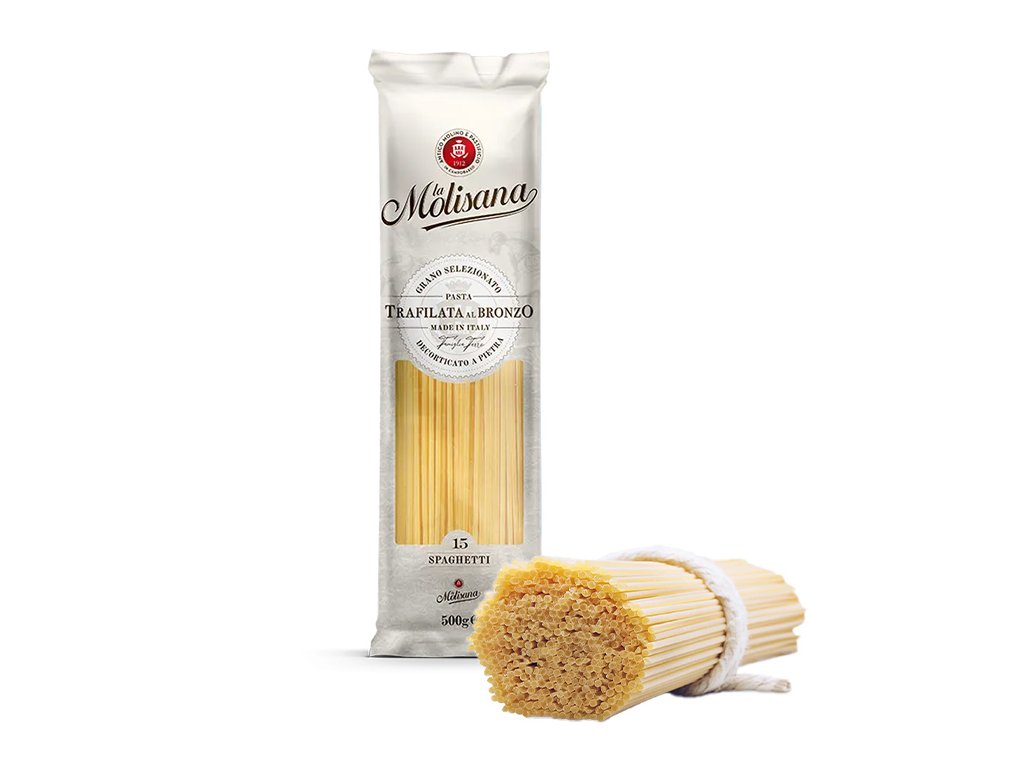 Špagety La Molisana jsou přítomny téměř v každé řadě a oslovují svou lahodnou strukturou: neuvěřitelnou kombinací, která vzniká díky dokonalému sušení a bronzové matricí, která svou drsností povrchu vytváří podmínky pro dokonalou přilnavost koření.