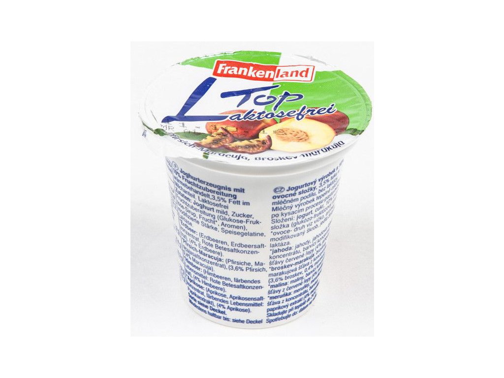 - Jogurtový výrobek s 10% ovocné složky, 3,5,% tuku v mléčném podílu, bez laktózy. Mléčný výrobek tepelně ošetřený po kysacím procesu - pasterovaný.