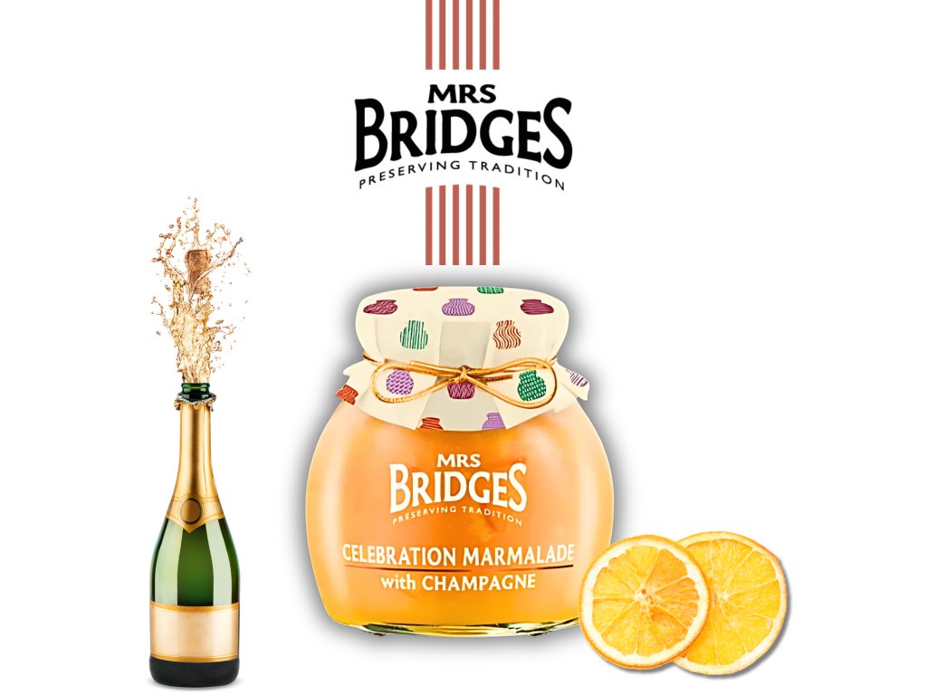 Užijte si kouzlo britské tradice s jedinečnou pomerančovou marmeládou značky Mrs. Bridges. Tato luxusní marmeláda představuje spojení tradiční skotské receptury a luxusu v podobě přírodního vína Marc de Champagne.