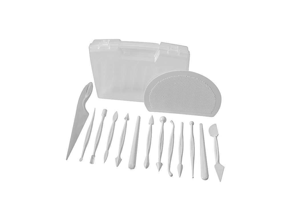 Sada 15 kusů nástrojů na tvarování a modelování marcipánu. Sada obsahuje : 1 nůž, 1 pracovní kartu, kufřík, a 12 tvarovacích kostic.