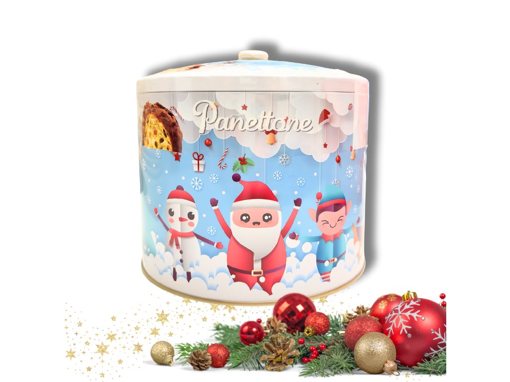 Vánoční Panettone v plechové dóze 750g – Vánoce na sněhu Originál z italského pekařství, trvanlivost do 6/2026