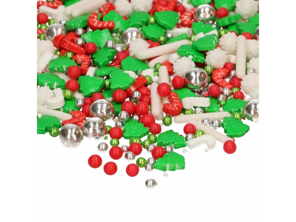 Objevte kouzlo a radost, kterou přináší tento vánoční mix posypek. S pestrou kombinací červených a bílých posypek, lesklých perel a roztomilých zelených vánočních stromků můžete snadno vytvořit nádherné dekorace na vaše cukroví, koláče nebo dorty. Každý kousek pečeného sladkého pokladu se stane malým mistrovským dílem, které potěší oko i chuťové buňky.