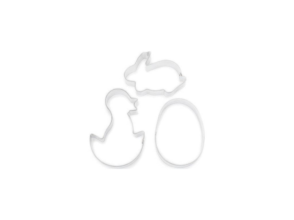 Vykrajovátka ve tvaru kuřátka, králíčka a vajíčka s dostatečnou velikostí pro ozdobení po upečení.Doplňkové parametry