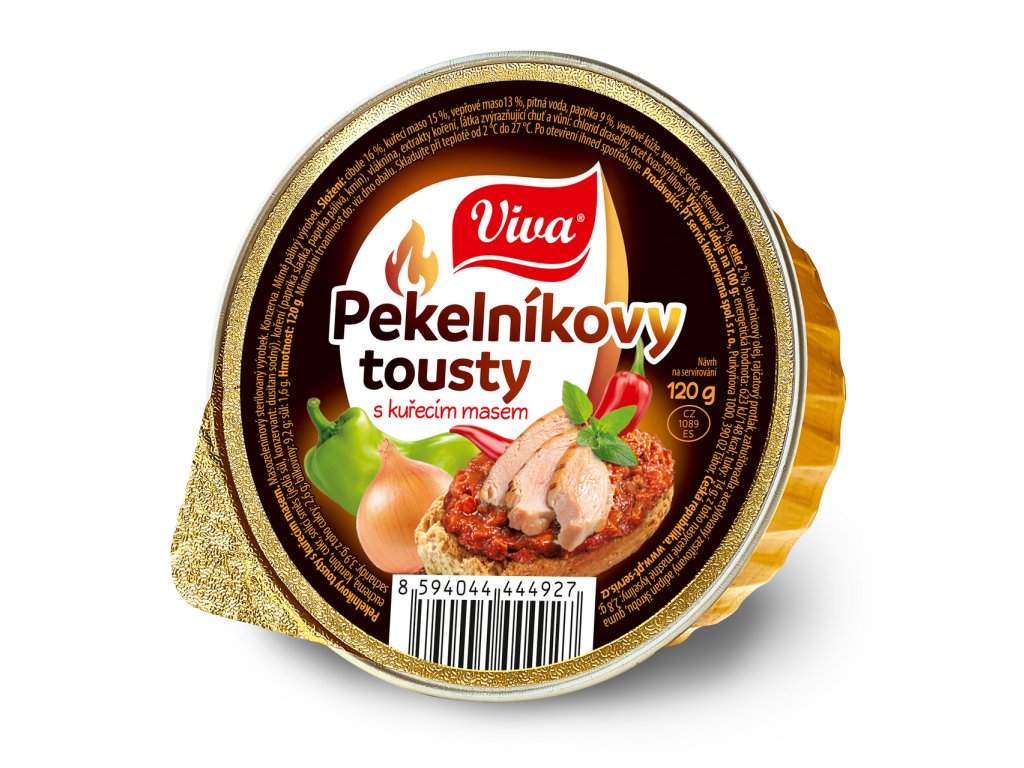 - Pekelníkovy tousty kuřecí. Sterilovaný mastný výrobek - konzerva.