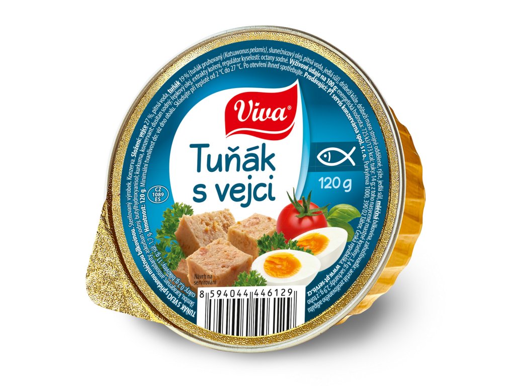 - TUŇÁK S VEJCI 120g,Sterilovaný mastný výrobek - konzerva.