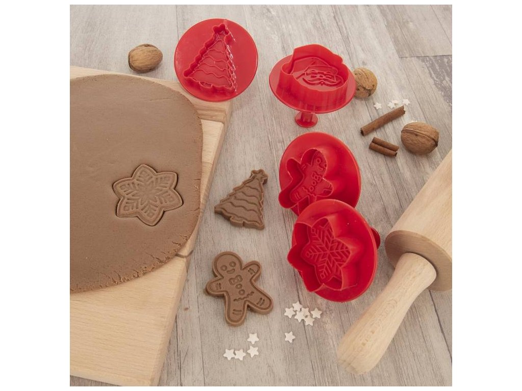 Vykrajovačka s pístem skvěle vytvoří domácí perníčky nebo sušenky. Nejdříve vykrojíte klasicky obrys, pomocí pístu pak obtisknete plastický vzor. Sada 4 vánočních tvarů – stromeček, vločka, Santa, perníček. Vhodné nejen na sušenky a perníčky, ale také na marcipánové ozdoby nebo modelovací hmotu. Materiál: plast PP, kov-ocel Rozměry: 5 cm
