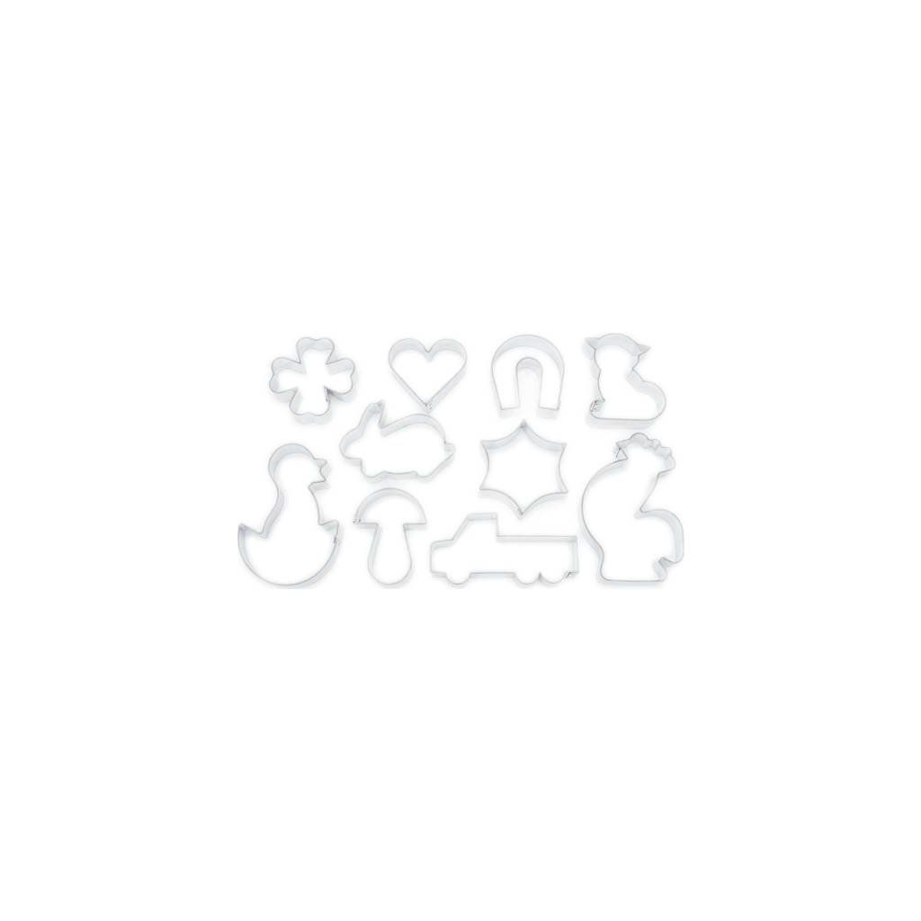 Deset jednoduchých populárních tvarů, které jsou vytvořeny zejména pro menší děti, které se při jejich konzumaci zároveň učí jejich významu, při vytváření mohou díky bezpečnému provedení a zaoblenému hornímu okraji vykrajovaček také pomáhat.Doplňkové parametry
