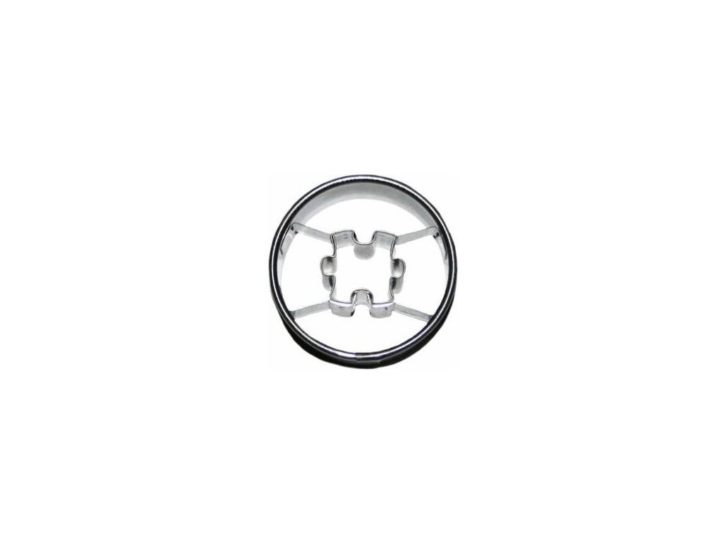 Vykrajovátko cukroví ve tvaru kolečka s dílkem puzzlí uprostřed.Doplňkové parametry