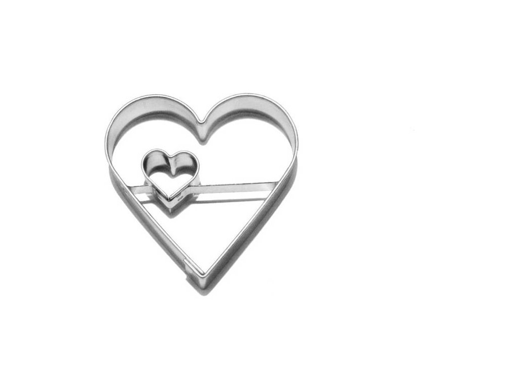 Vykrajovátko na cukroví ve tvaru srdce s vyříznutým malým srdíčkem.Doplňkové parametry