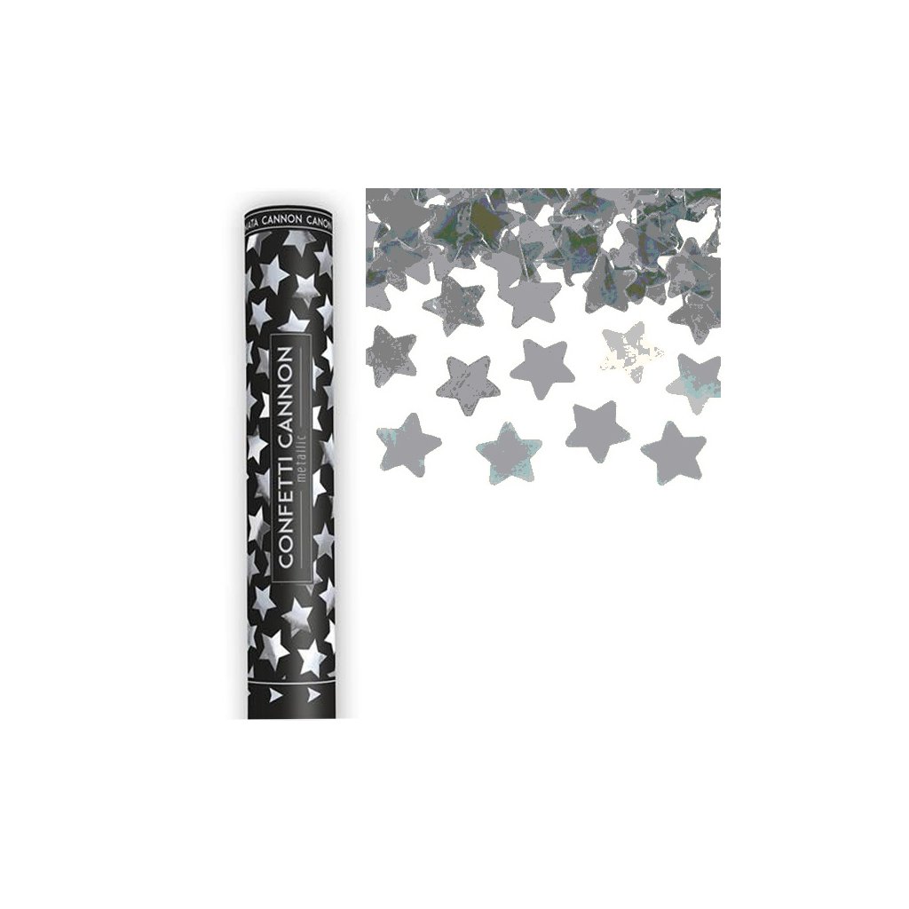 Vystřelovací konfety stříbrné hvězdy – 60 cm /BP