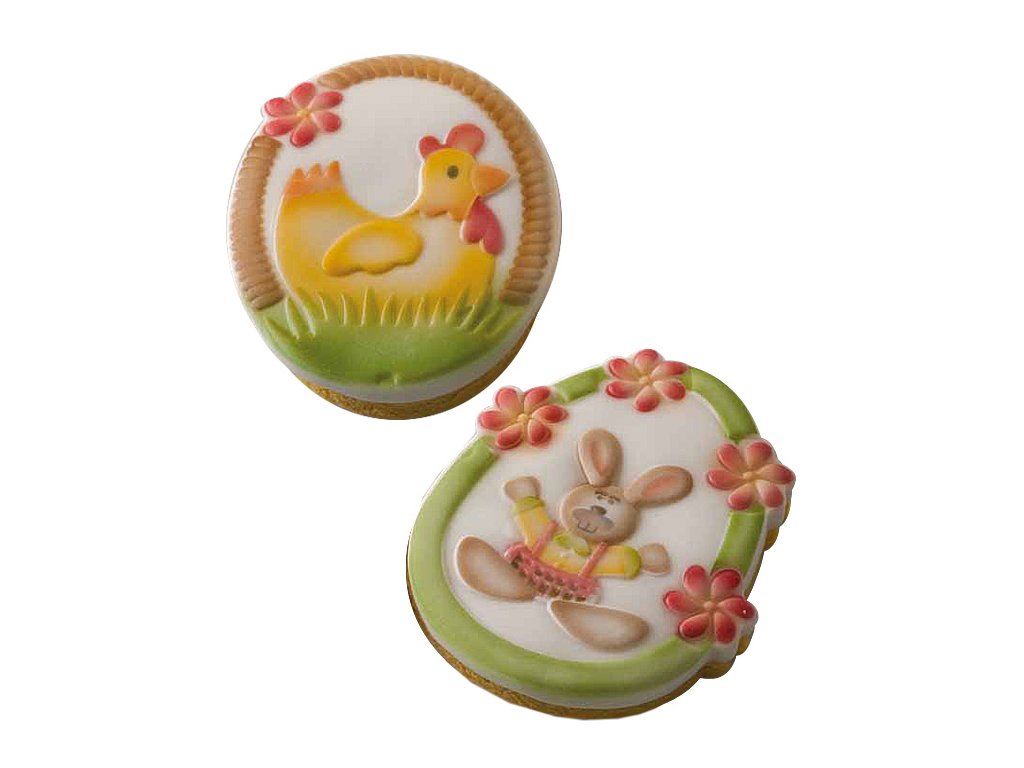 Vytlačovač-vykrajovátko plast a stencil (slepička a zajíc) 2+2 ks/sada