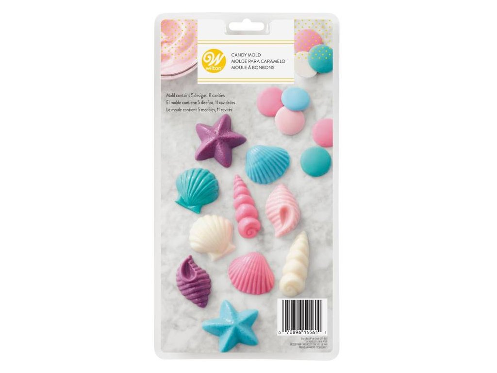 Forma na odlévání čokoládových bonbonů nebo i na nepečené cukroví ve tvaru mušlí. Výška tvaru: 3,5 - 5,5 cm. Forma obsahuje celkem 11 tvarů. Materiál: plast Výroba čokoládových bonbonů je velice jednoduchá. Při výrobě plných čokolád nalijeme do formy čokoládovou hmotu, povrch srovnáme cukrář.kartou a necháme ztuhnout. Pokud chceme vyrábět plněné bonbonů, musíme nejdříve vyrobit tzv. skořápku a to představuje nanesení čokolády na boky tvarovné formy, dáme do mrazáku podchladit a pokud je vrstva tenčí, naneseme vrstvu druhou. Do vytvořené skořepiny vkládáme požadovanou náplň - marcipán, alkoholové náplně, oříškové nebo karamelové. Záleží jen na naší fantazii a chuti. Při plnění skořepiny nezapomeneme na ponechání prostoru na zavíčkování bonbonu - tj zalití náplně další vrstvičkou čokolády. Formu opět vkládáme do chladu a po vytuhnutí vyklepneme.Doplňkové parametry