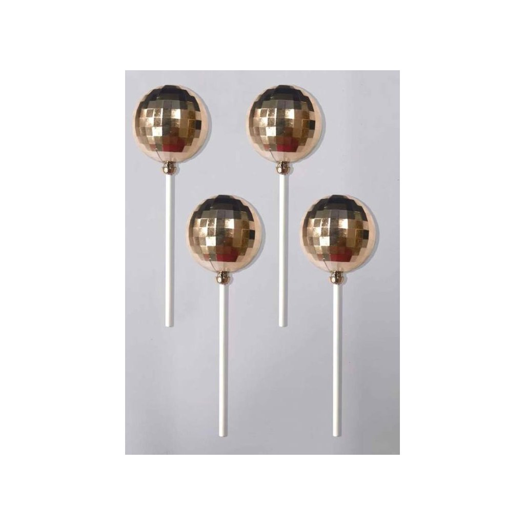 Zápich do dortu Disko koule růžovo-zlaté 3 cm (4 ks) ▹