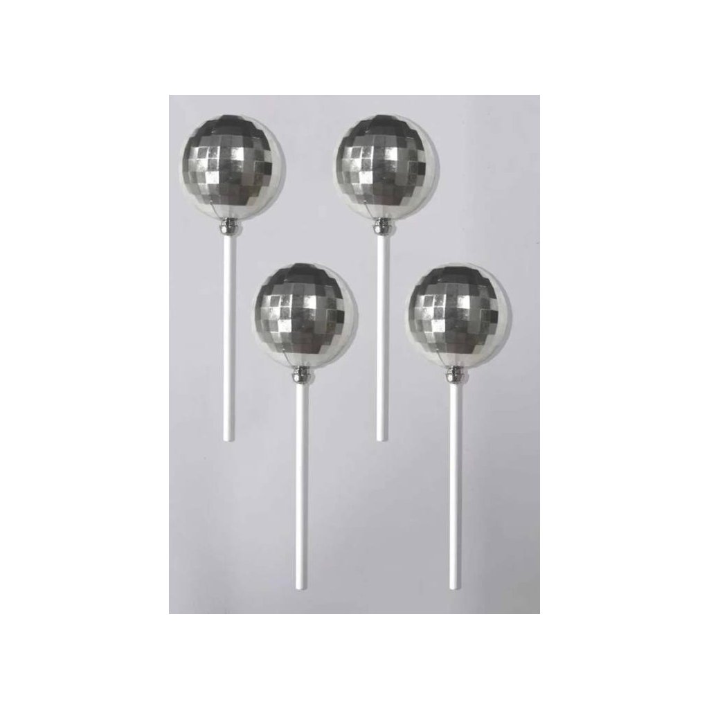 Zápich do dortu Disko koule stříbrné 3 cm (4 ks) ▹