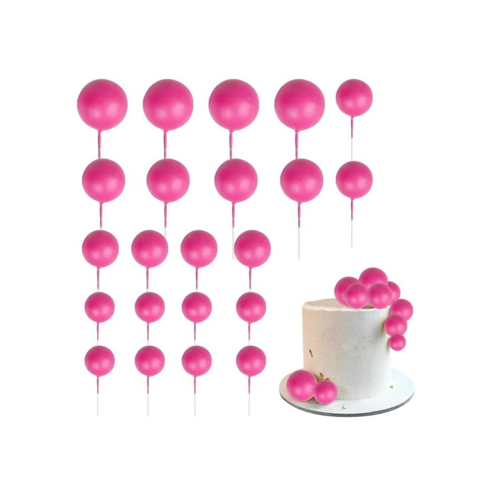 Zápich do dortu Koule růžové různé velikosti (20 ks) ▹