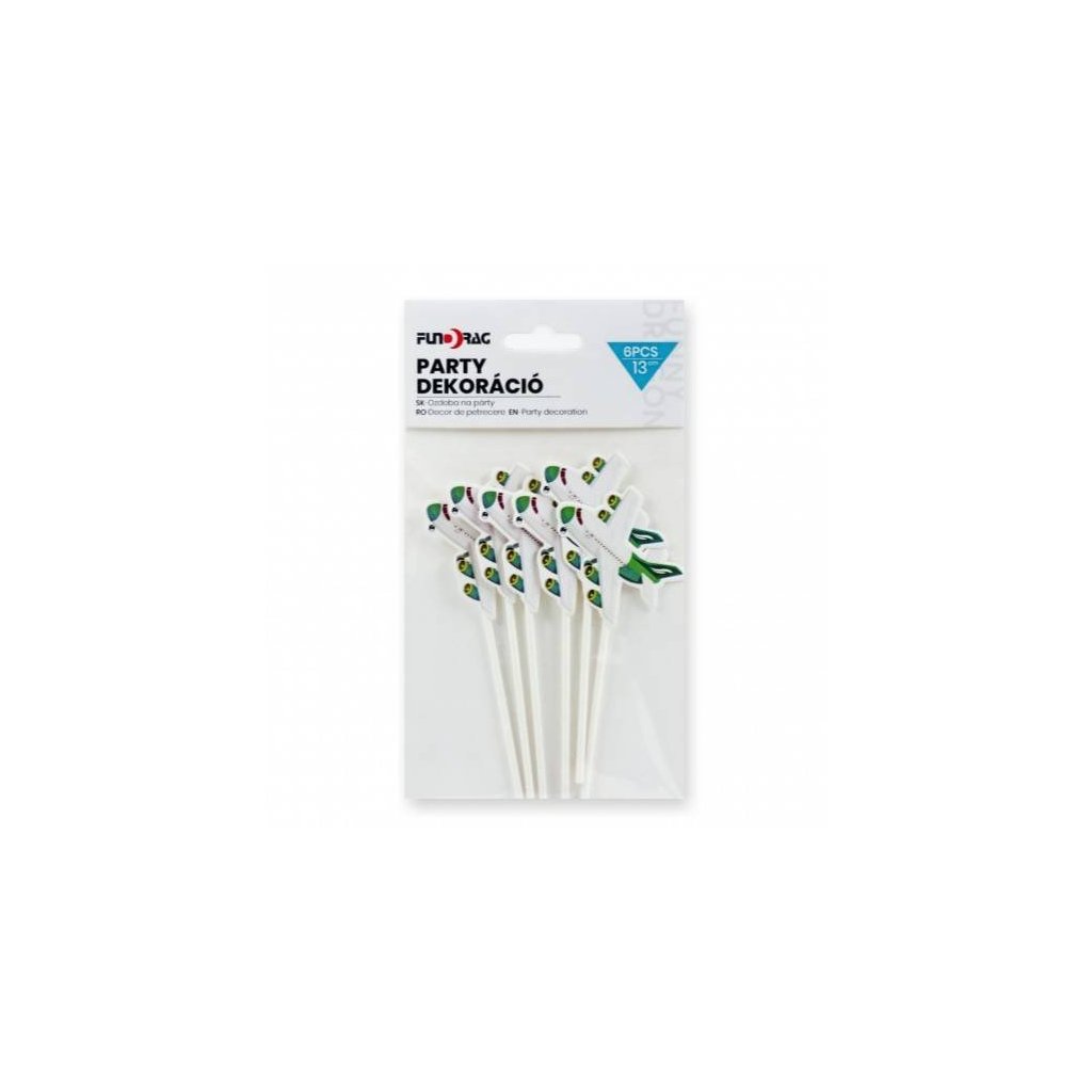 Dodejte dětskému dortu dobrodružnou atmosféru! Tato sada šesti zápichů s motivem letadla je ideální pro malé piloty a milovníky všeho, co létá. Zápichy snadno zapíchnete do dortu nebo cupcakes a vytvoříte tak jednoduchou, ale efektní tematickou dekoraci. Výška: 12,5 cm (4,5 cm bez zapichovací části)Doplňkové parametry
