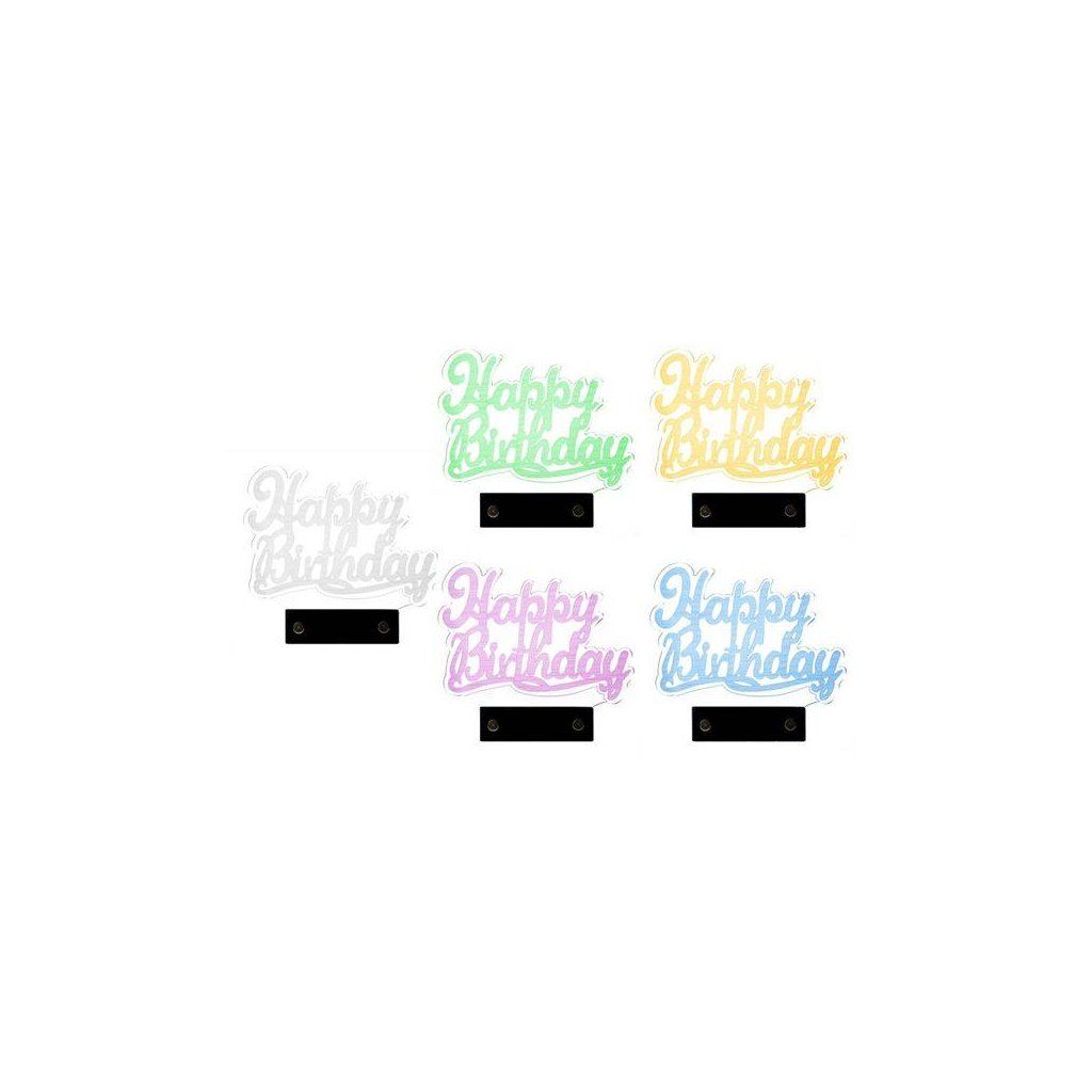 Plastový zápich do dortu svítící Happy Birthday ▹