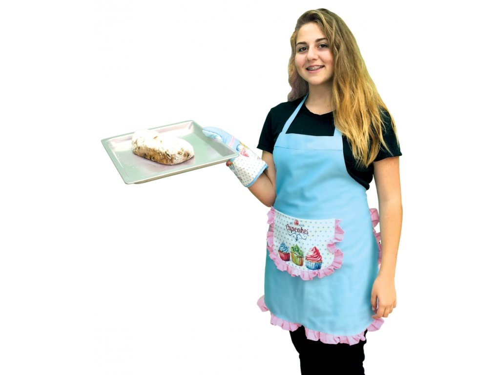 Cupcake zástěra pro všechny nadšené pekařky ze 100% bavlny s velkou kapsou