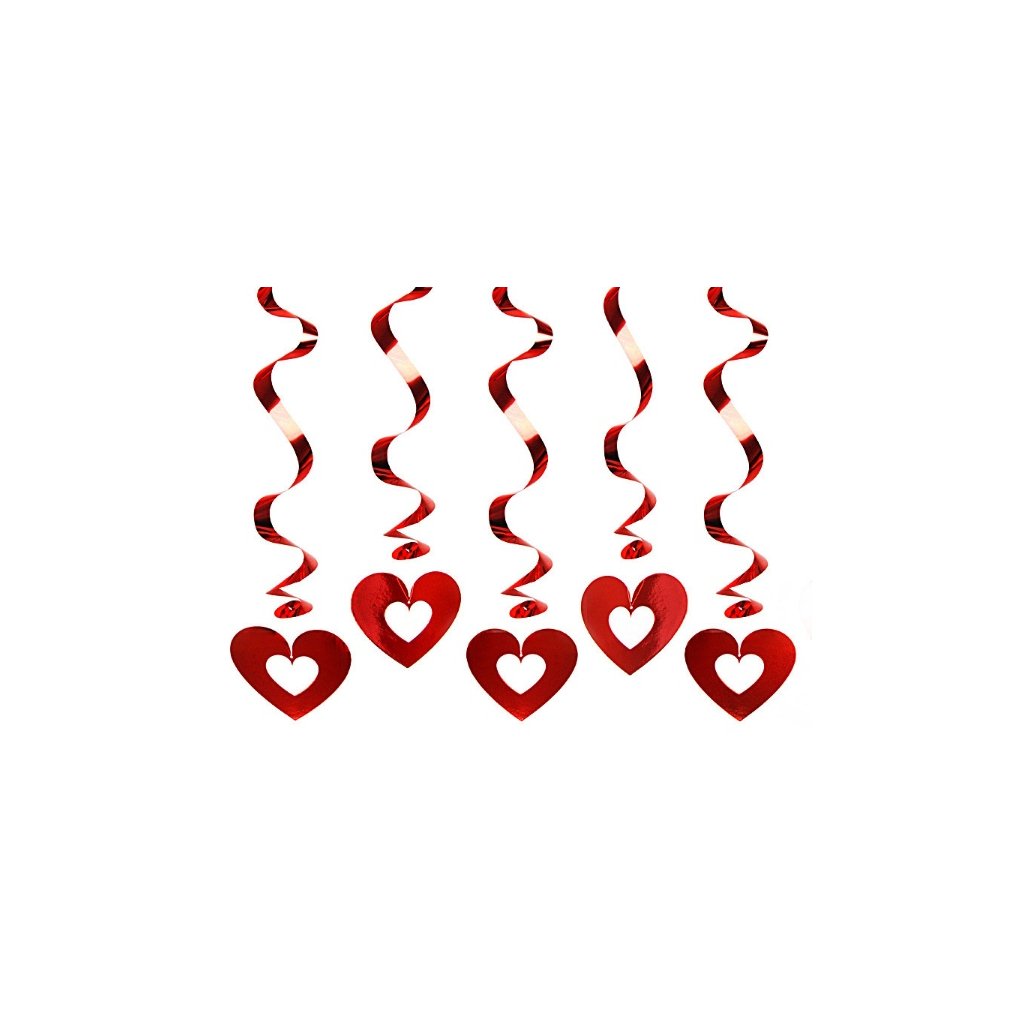Závěsná dekorace Červená srdíčka 60 cm. Závěsné spirály jsou vyrobeny z pevného a lesklého papíru. Skvělá závěsná dekorace na vaší oslavě narozenin nebo výzdoba party. Tímto jednoduchým party doplňkem, dotáhnete každou oslavu k dokonalosti. Spirály mají délku 60 cm a jsou opatřeny poutkem na zavěšení. Balení obsahuje 5 kusů spirál.Doplňkové parametry