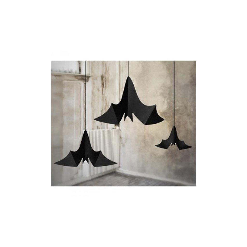 Trojice elegantních závěsných netopýrů z černého papíru je ideální volbou pro všechny, kdo chtějí vytvořit tajemnou a strašidelnou atmosféru na Halloween. Různorodé velikosti působí přirozeně a dodávají dekoraci na dynamičnosti. Snadno se zavěsí na strop, lustr nebo do oken a okamžitě přitáhnou pozornost. Doporučujeme kombinovat s dalšími halloweenskými prvky, jako jsou pavučiny, lebky nebo krvavé dekorace. Technické parametry:Rozměry: 47 × 23 cm, 37 × 19 cm, 31 × 14 cmMateriál: PapírBarva: ČernáBalení: 3 ksPoužití: závěsná výzdoba interiéru, tematická párty, HalloweenDoplňkové parametry