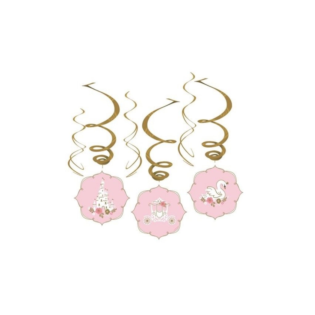 Party papírové a foliové závěsné spirály na tématickou party Na den princeznou. Vhodné do kombinace s ostatní dekorací této party. Rozměr: 45 až 80 cm. Balení: 6 ks.Doplňkové parametry