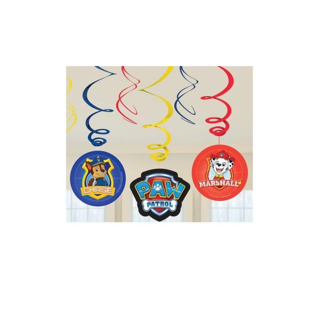 Cukrářské potřeby a suroviny pro sladké pečení.Produkt pro domácí cukráře: 6 vířivých dekorací, závěsných Paw Patrol 2018 fólie / papír 61 cm ,