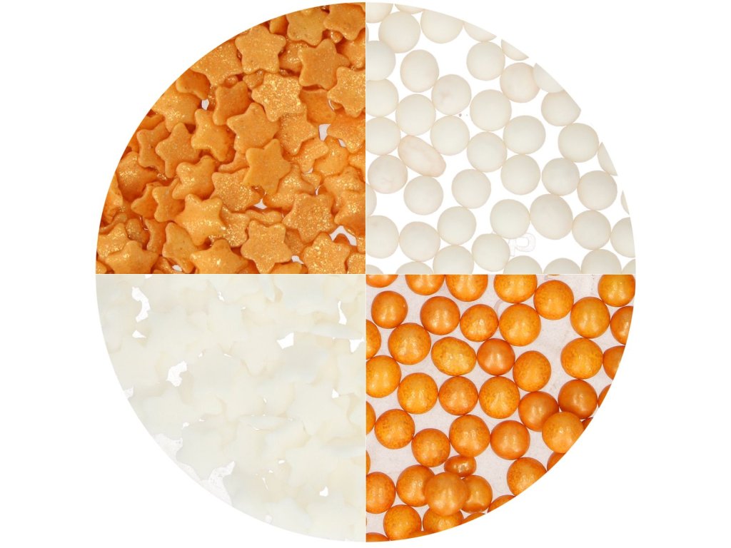 Zlaté cukrové perly: Zkombinujte s ostatními druhy posypky pro unikátní a sofistikovaný vzhled vašich dezertů.
