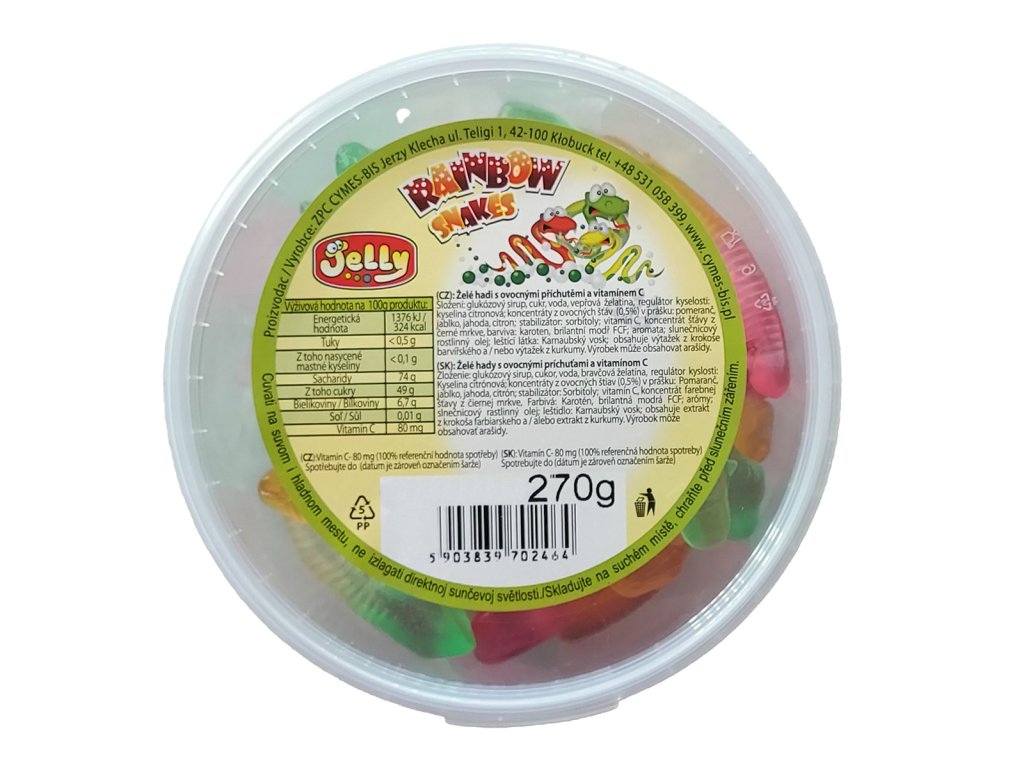 Nakupovat potraviny, drogerii a další potřeby pro domácnost online se vyplatí. Náš online supermarket Terunka.cz, toho má v kategorii: mnohem více. Prohlédněte si celou naší nabídku a ušetřete svůj čas i peníze.Želé hadi 270 g za skvělou cenu, máme skladem.