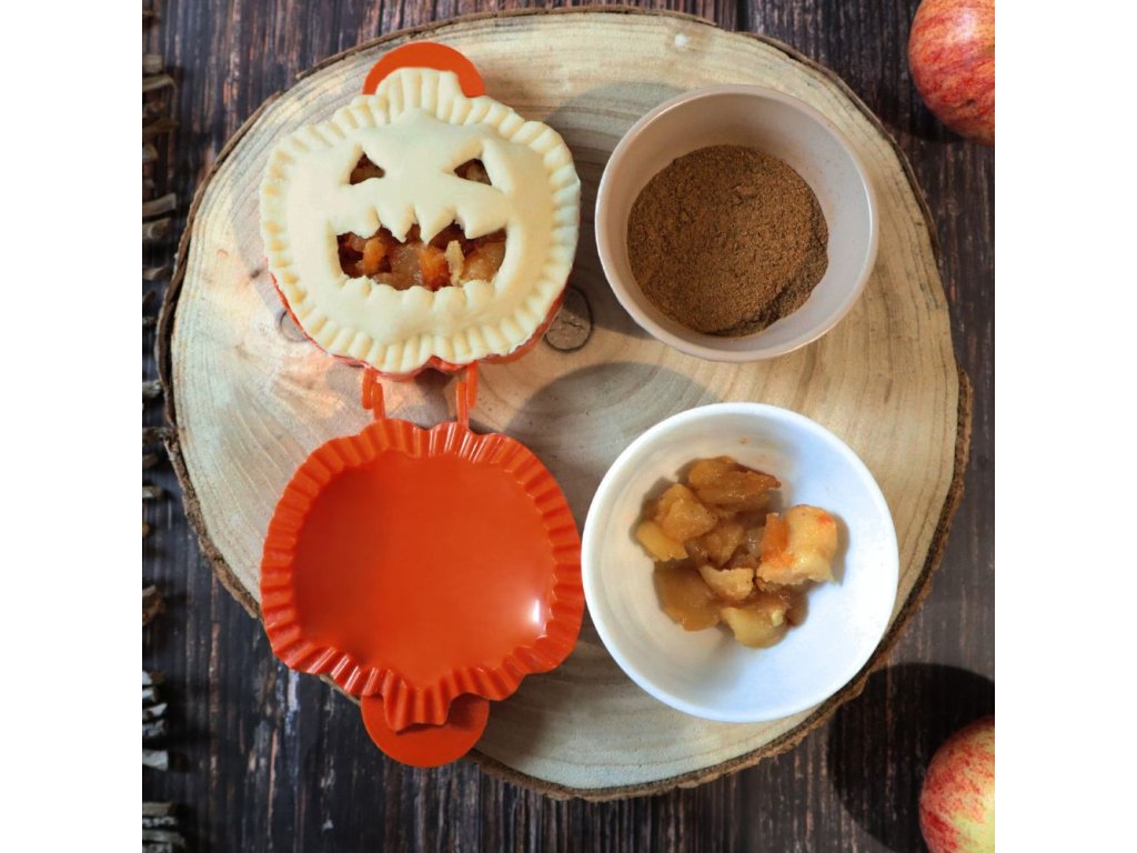 Díky dýňovému tvaru vám tato forma na těsto pomůže vytěžit z vašeho halloweenského pečiva to nejlepší! Změňte obvyklé obracení jablek na sladký dýňový nebo čokoládový recept! Skvěle se hodí na vykrajování marcipánu a listového, nebo lineckého těsta.